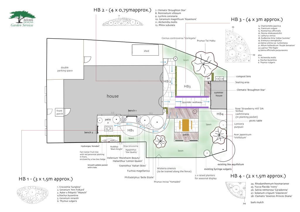 This is a complete garden design of a back garden including four main herbaceous borders. A robust plan was created after a full site survey and we will hopefully be developing it the 2021 season.