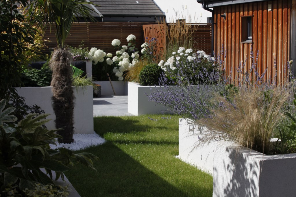 The brief here was for a garden which has got a contemporary feel and clean look, with lush green planting and limited palette of colour.